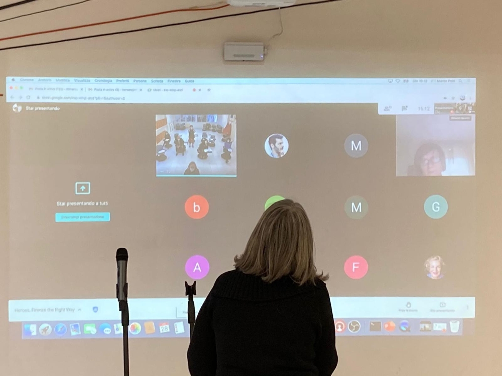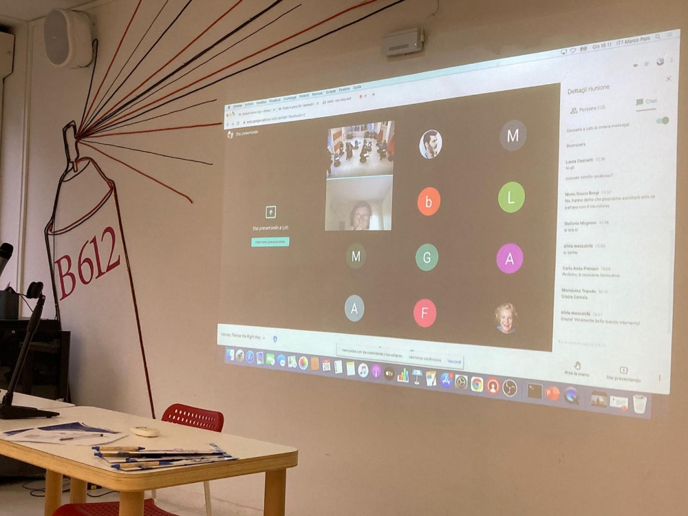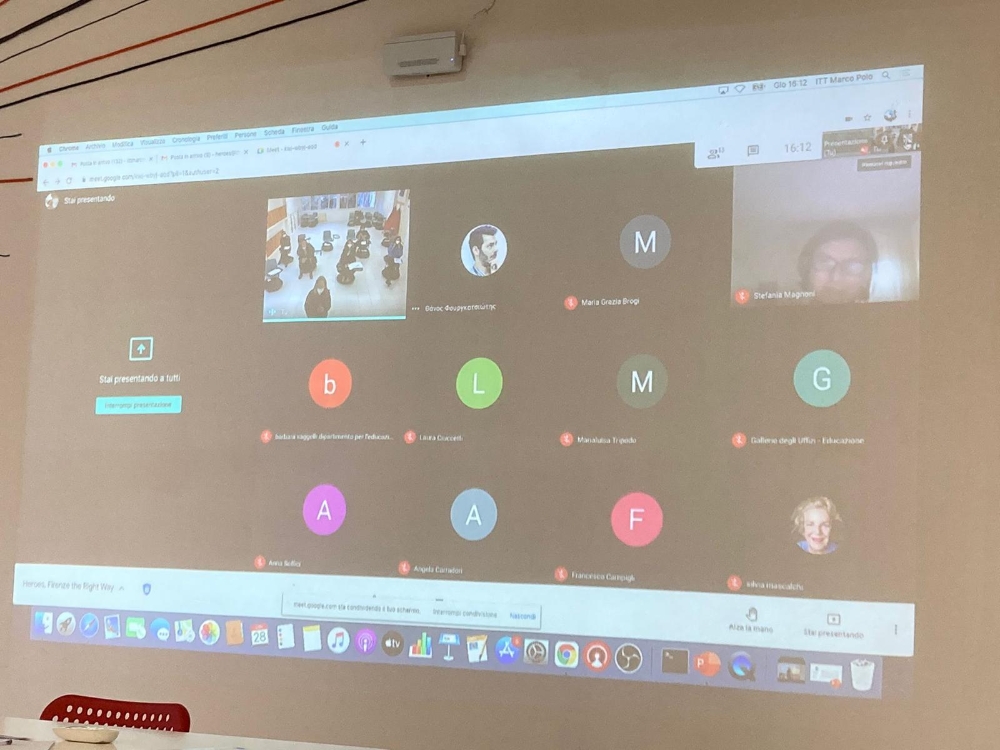 Despite the still critical situation linked to the Covid-19 health emergency,the meeting was held in “dual learning” mode in the newly renovated space Aula Liberamente with ten teachers from the school present, while in distance learning via video conference about 15 teachers from Marco Polo, teachers from other schools in and around Florence, the cultural educators from the School Department of Youth of the Uffizi Gallery,and two international partners of the project, representing EKEDISY,National Centre for Reseach and Preservation of School Material from Athens.With the support of Professoressa Jane Nyhan the workshop was enriched by the translation in English, allowing the Greek partners to interact and intervene, speak in real time with QUESTIONS,and requests for clarification.