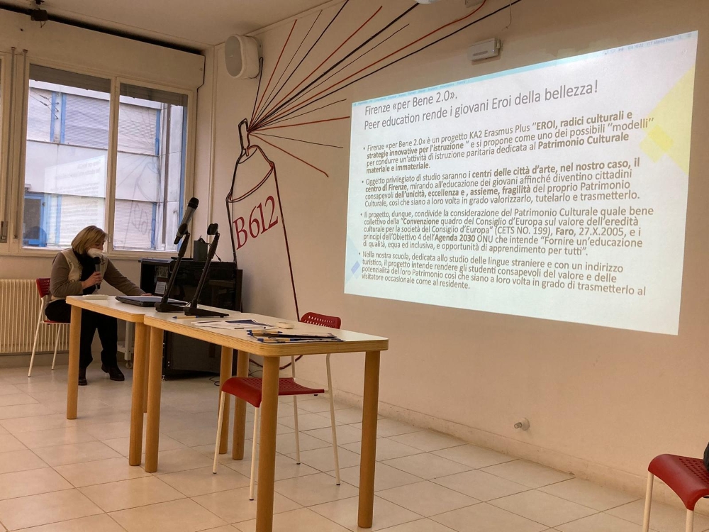 The meeting,coordinated by prof.ssa Elena Radicchi, the Business Tourism teacher,Marco Polo Erasmus Referent, and team member of HEROES, opened the workshop introducing the Art History teacher Daniela Bove who gave an interesting historical panorama of the Peer to Peer education methodology. There are traces of the first attempts to apply this method which date back to the Middle Ages with “il mutuo insegnamento “(mutual teaching/learning),then later in the seventeenth century by the protestant pastor, Comenius and in the following two centuries by philanthropists and pedagogists, finding then an extension rather close to the contemporary approach with the School of Don Milani in the second half of the 900.