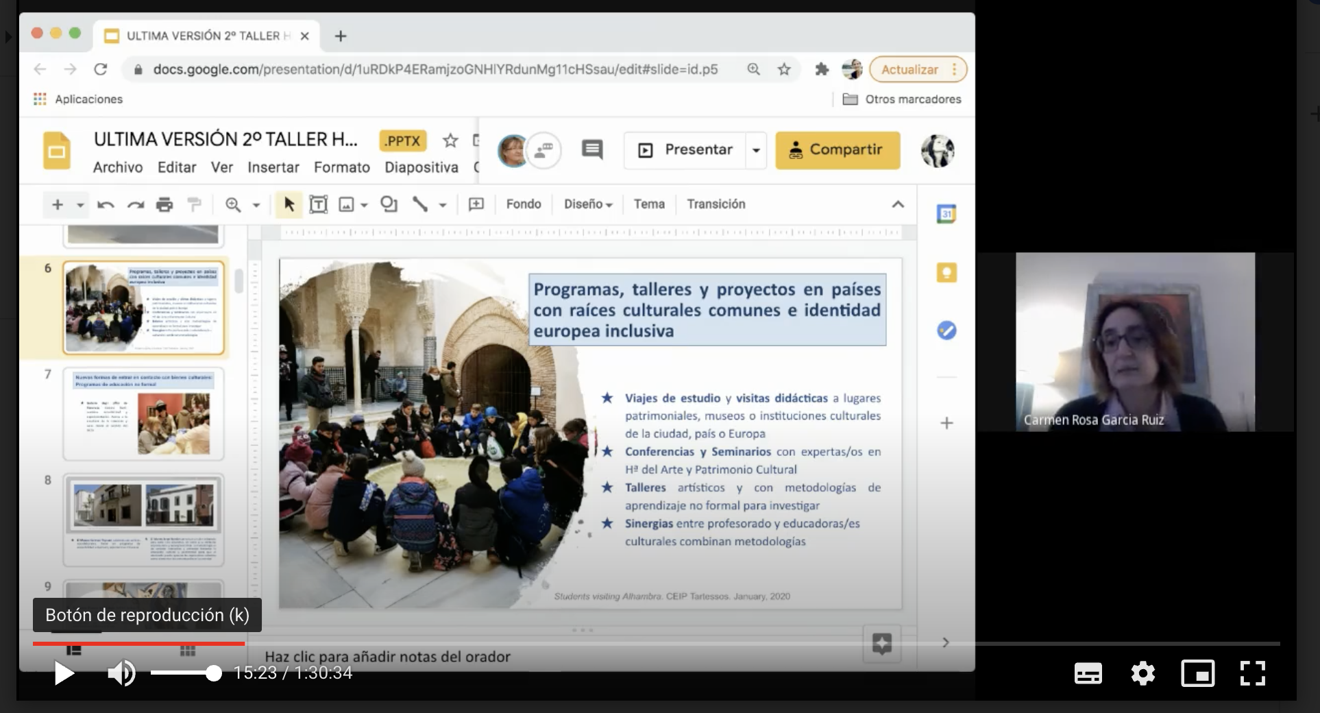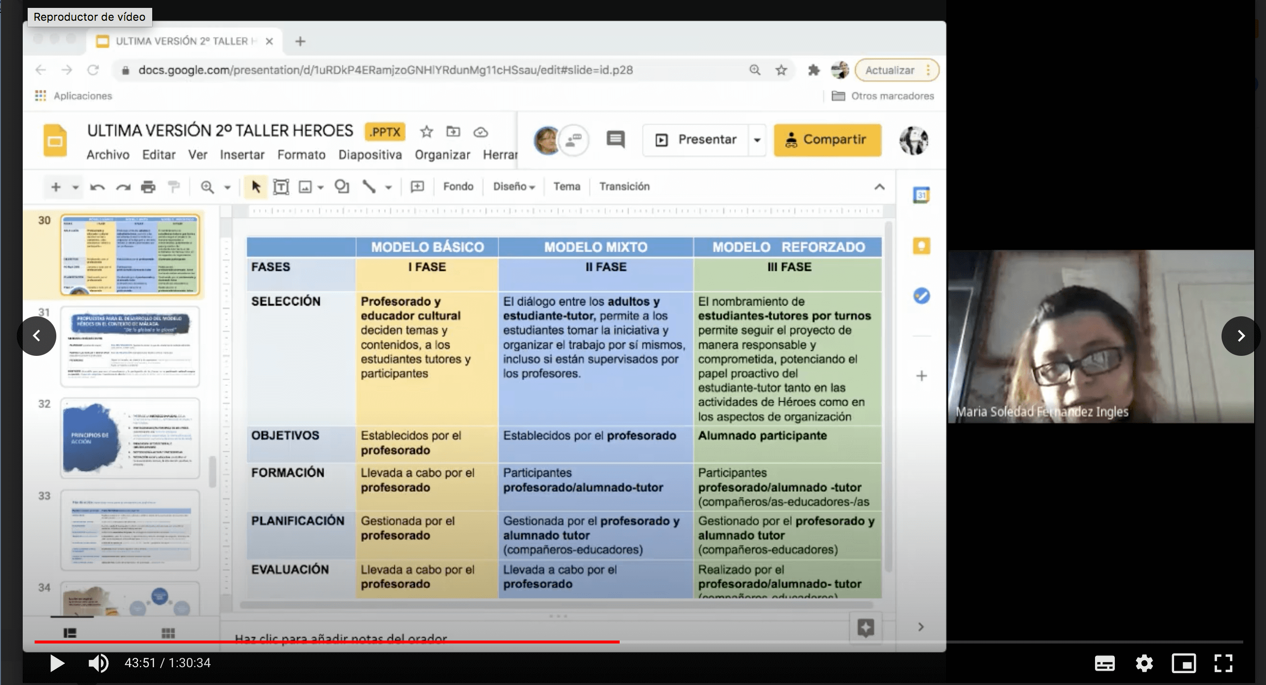 Practical session, in which the assistants - two educators of the Thyssen Museum and the Jorge Rando Museum, seven teachers of Secondary Education and Baccalaureate, and the five professors who develop the project 'HEROES' at the University of Malaga - participate in the design of an activity sensitive to peer learning, following the following scheme: