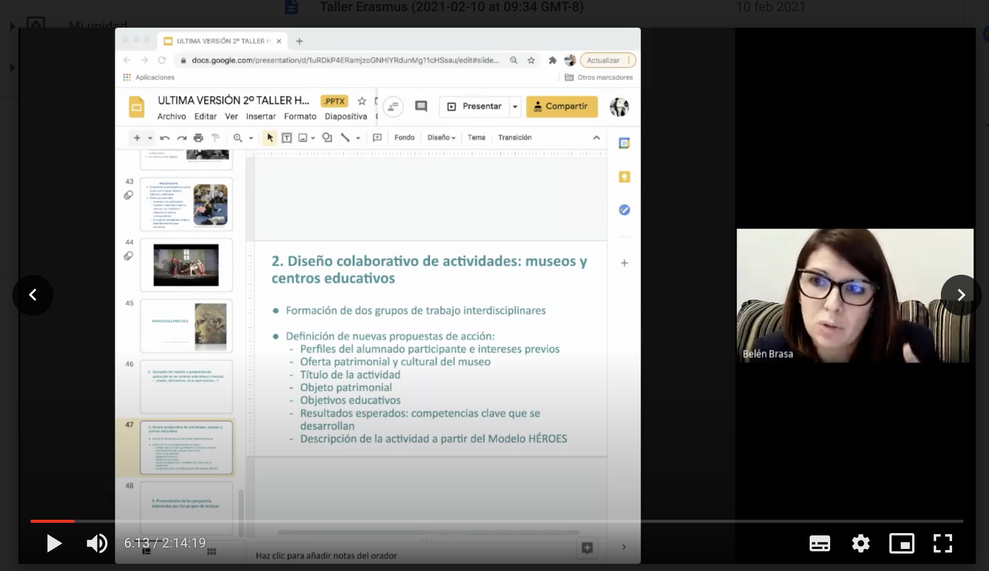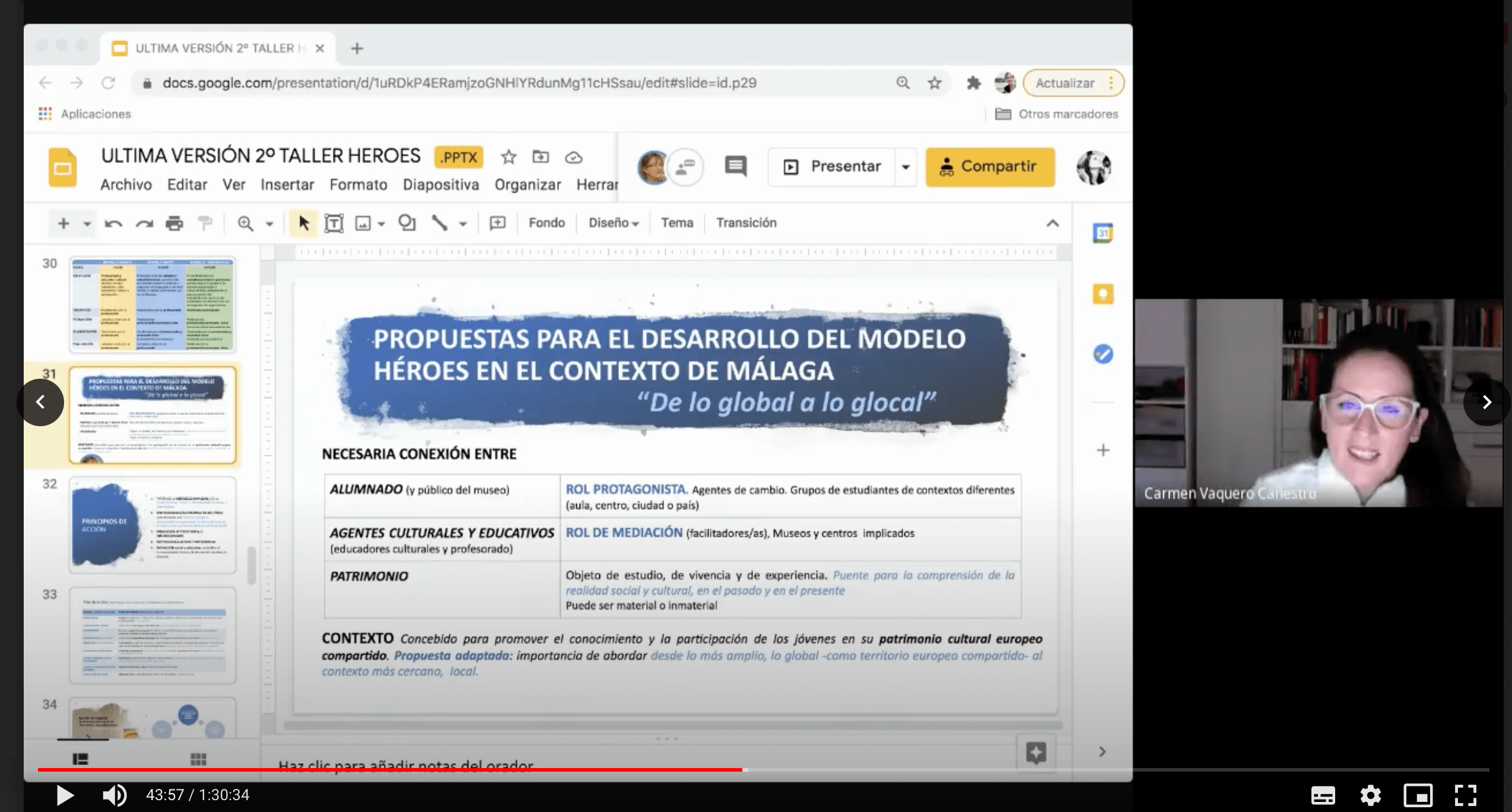 Theoretical session, aimed at exposing and discussing the draft model. This refers to the results of mapping on good practices in heritage teaching in museums and schools (1st workshop), the analysis of the status of the issue relating to heritage teaching and peer methodology, and methodological proposals to develop HEROES model.